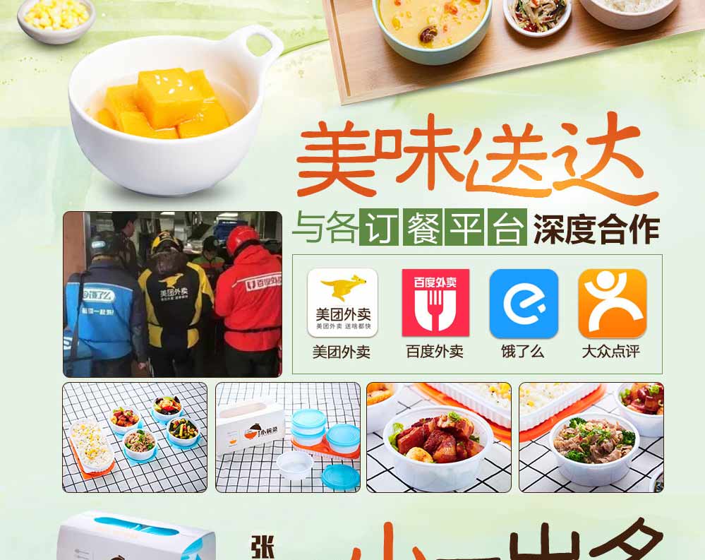 小碗菜面临大众化的消费人群进店就餐,张吉记小碗菜内含的特色项目针对于生活节奏加快的上班族、学生开启外卖模式,从而使店面营业额达到线上+线下的营收模式。